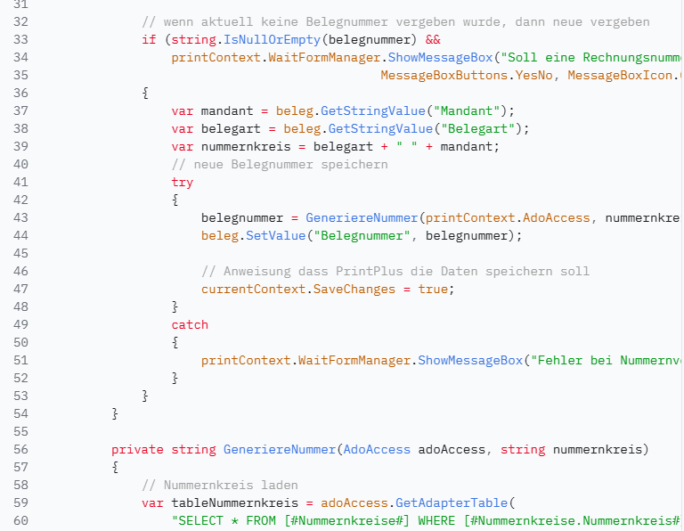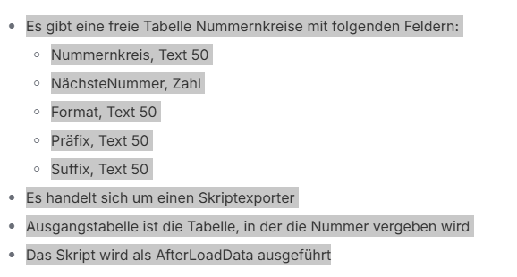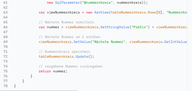 - Es wird zunächst geprüft ob der Datensatz bereits eine Nummer hat, nur falls leer wird die Nummer generiert.