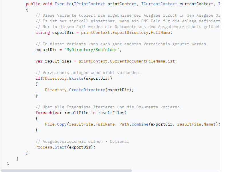 Dieses Skript zeigt, wie man die Ergebnisdokument einer Ausgabe in anderes Verzeichnis kopieren kann.