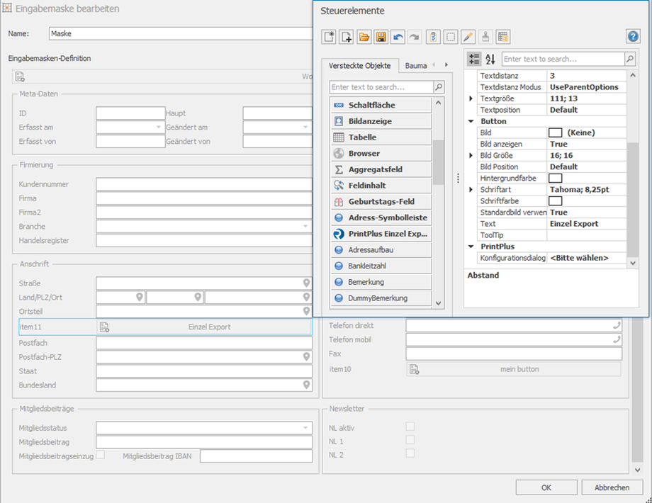 Steuerelement hinzufügen Das Element wird wie jedes cobra Element per Drag&Drop in die Eingabemaske gezogen.