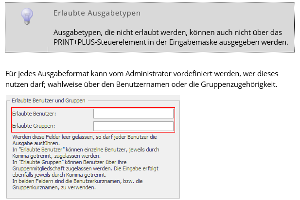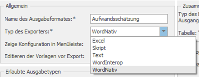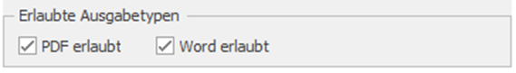Für das Ausgabeformat kann, soweit hierfür vorgesehen, vom Administrator vordefiniert werden, ob es als Word oder PDF ausgegeben werden darf.