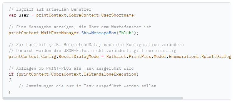 - den Zugriff auf den Waitform-Manager (via PrintContext.WaitFormManager)